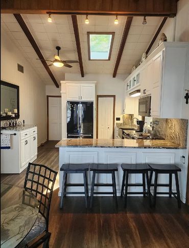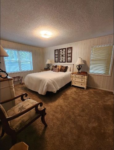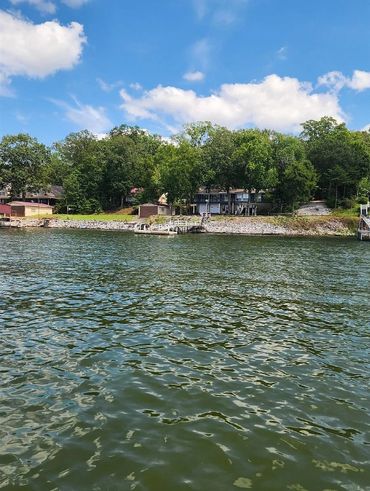 Peaceful, quiet, 3 BR, 2.5 BA home on 5 acres at the mouth of Bear Creek on Pickwick Lake. Low access to the water with beautiful views and a private dock. Wrap-around porch, sunroom, and additional stone patio for relaxing. Two additional private guest houses, each with a full bath. It also has a 24 × 65 ft pole barn behind the house for water toys. Close to shopping and restaurants in Iuka, MS, and Florence, AL. Price $685,000.